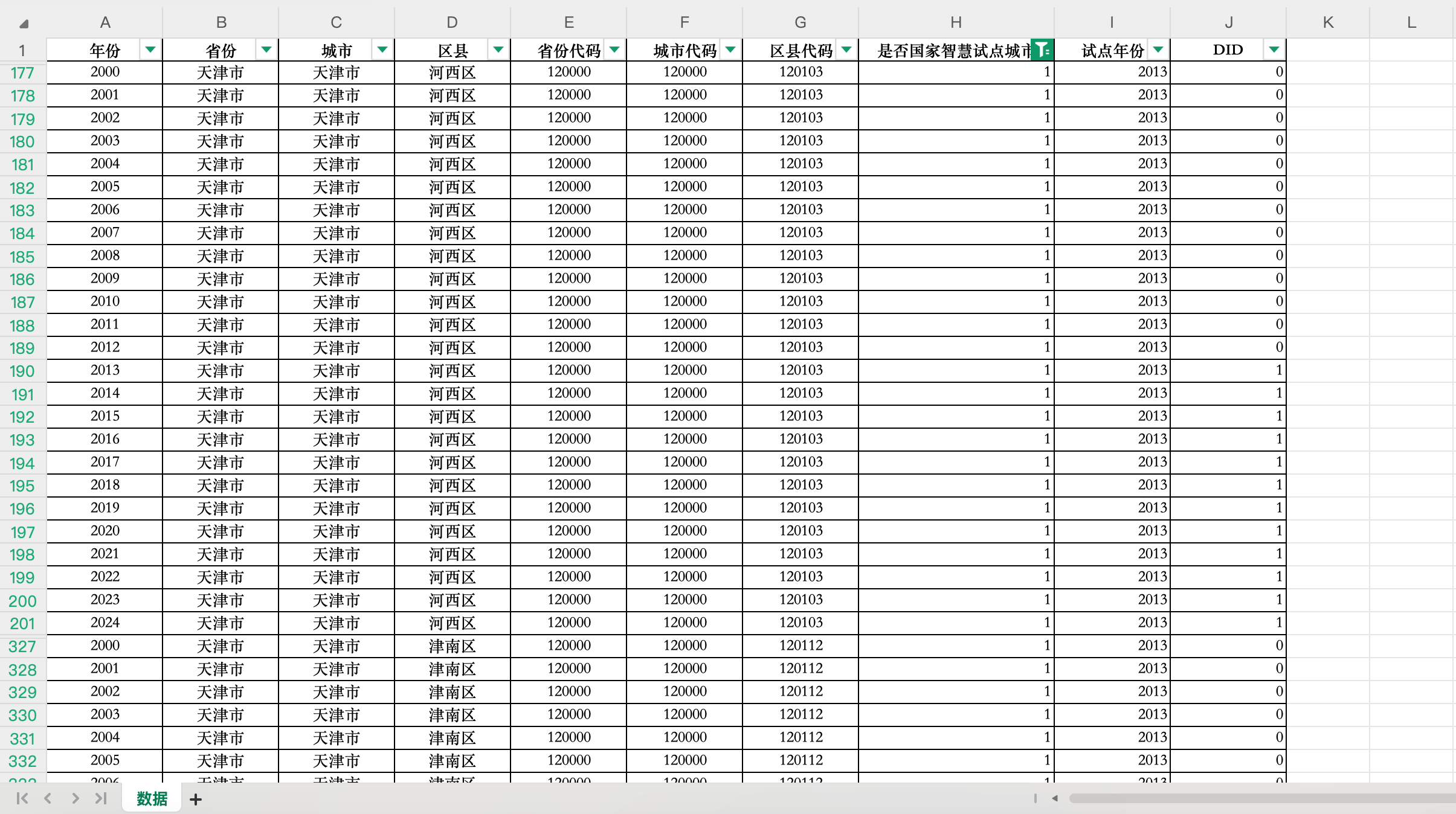 | 是否国家智慧城市试点 | 试点年份 | DID |