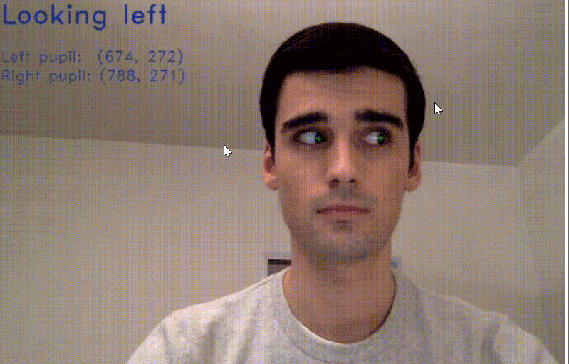 该系统通过持续从摄像头 捕获实时视频,处理每一帧来分析眼睛状态,随后显示视觉反馈(例如"向右看"或"眨眼")来指示用户的注视方向