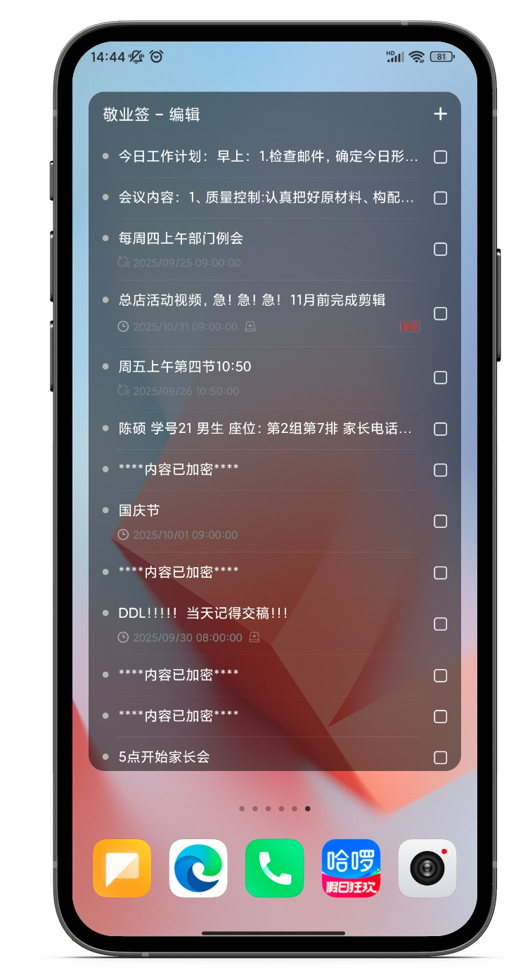 在深度体验多款工具后,我终于找到了个人备忘的终极解决方案------敬业签。这款应用完美平衡了功能丰富性与操作简便性,给我带来了极大惊喜。