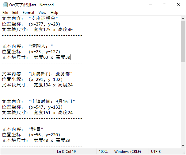 若需留存识别结果,可将文本内容与坐标信息写入本地文件,需指定 UTF-8 编码避免中文乱码: