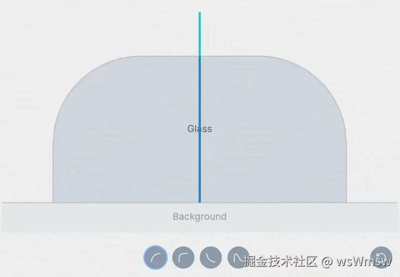 使用了 Apple 偏爱的方圆形:更柔和的平面 -> 即使被延展成矩形也能保持平滑的折射效果------没有生硬的内部边缘。它也能让边缘末端看起来比实际上更薄,因为最外部的平坦区域折射的光更少。
