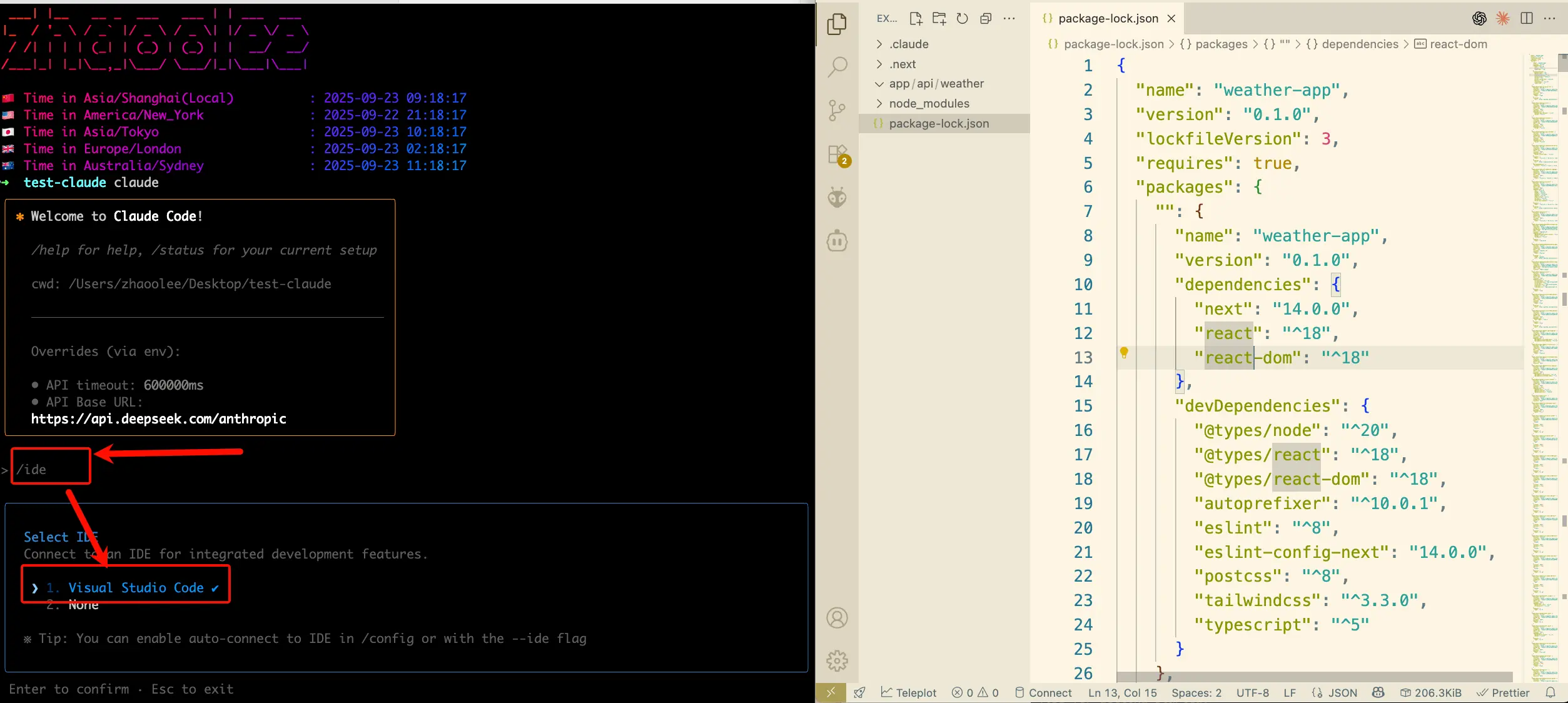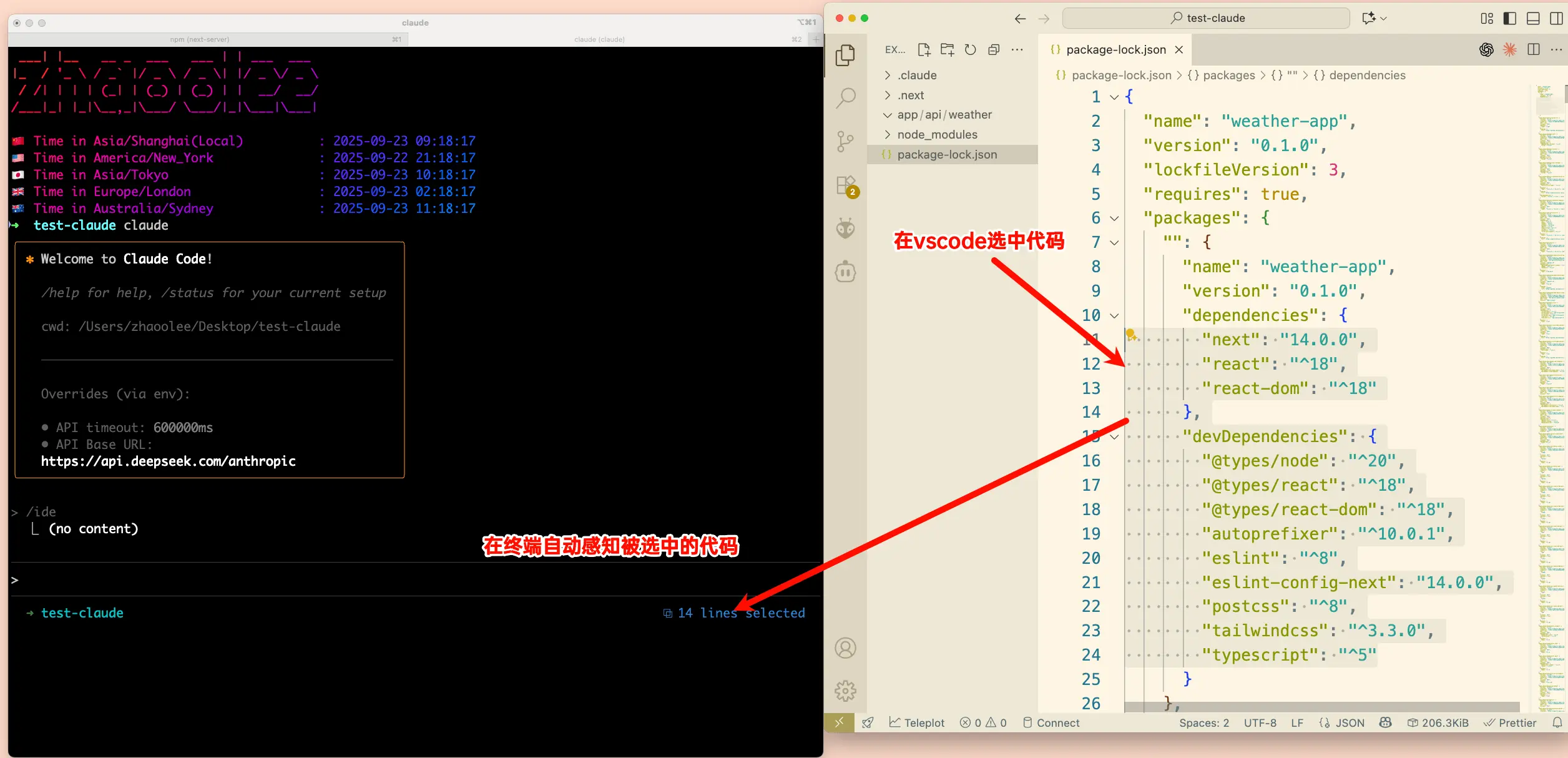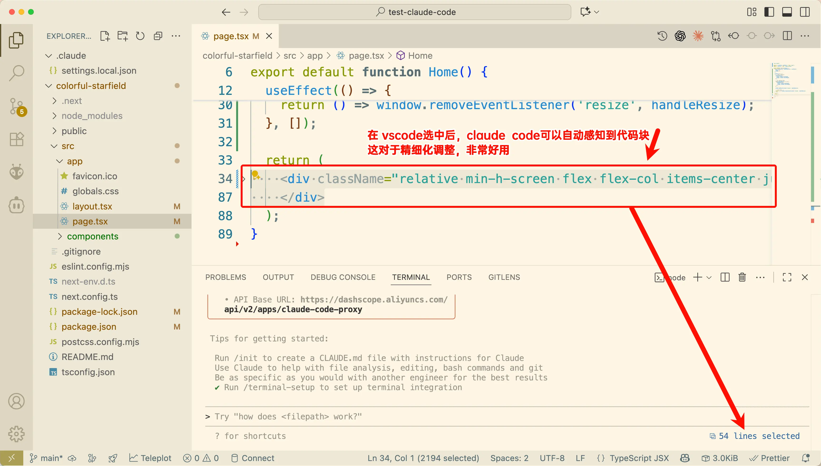 如果你不习惯使用vscode终端,可以在任意窗口打开claude,然后完成对vscode的关联,即可自动感知vscode代码选中等逻辑