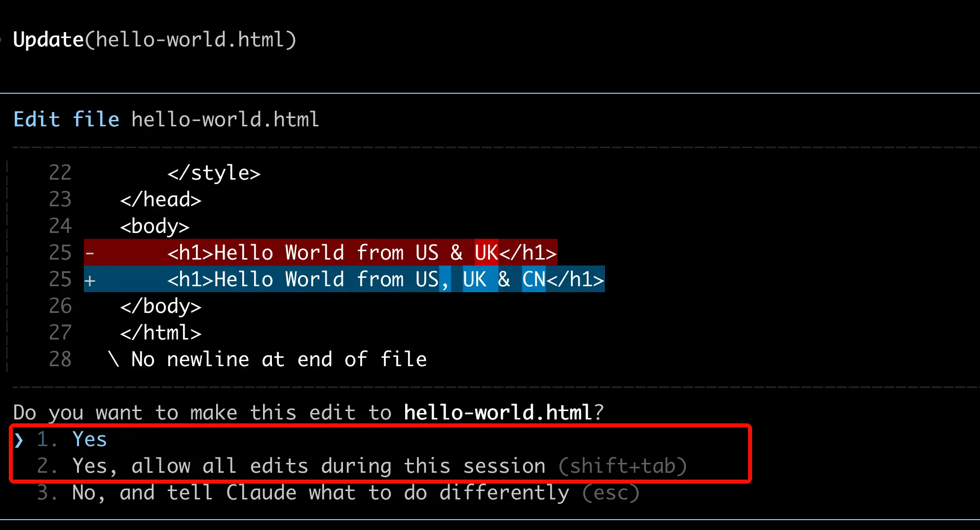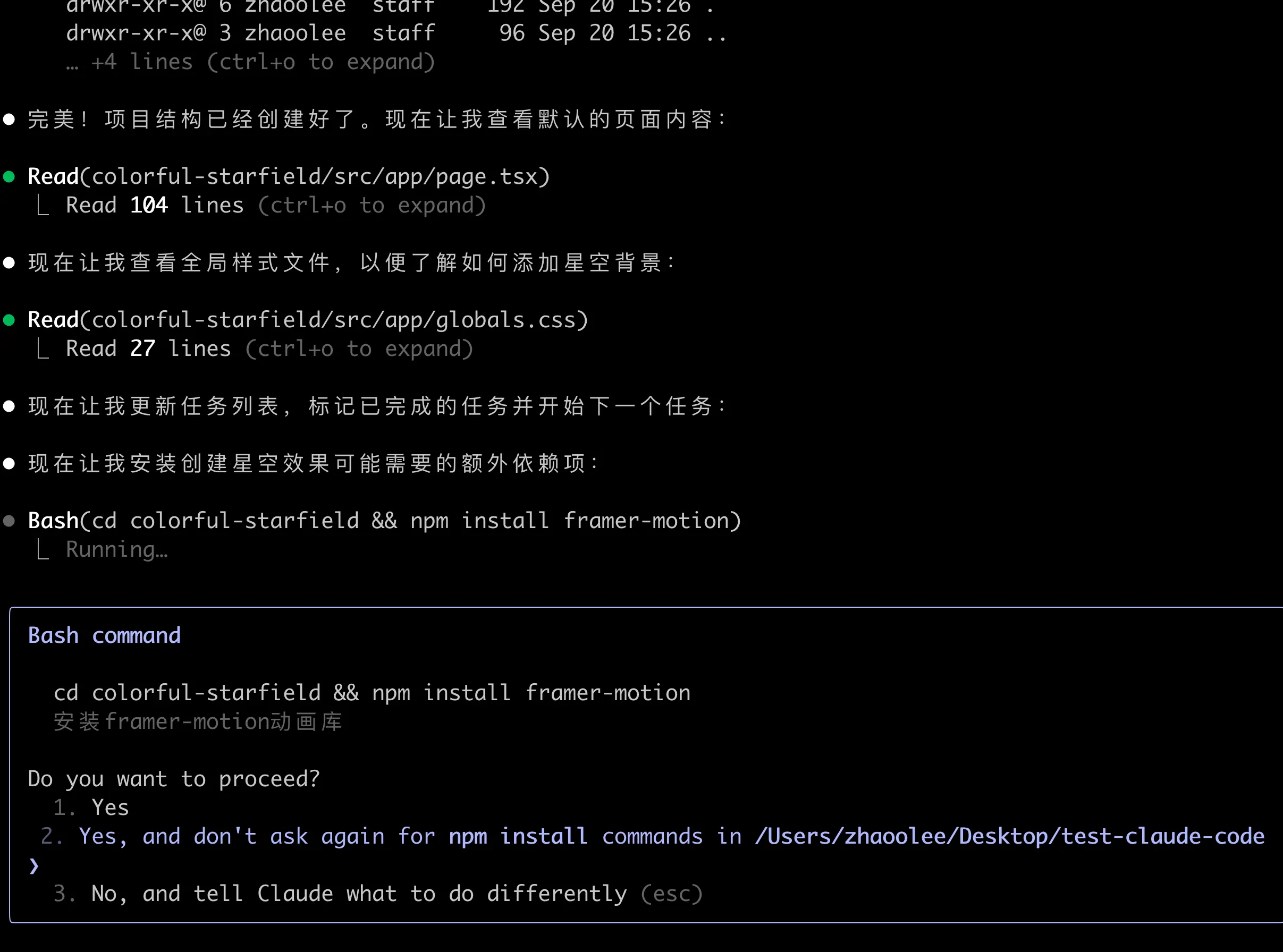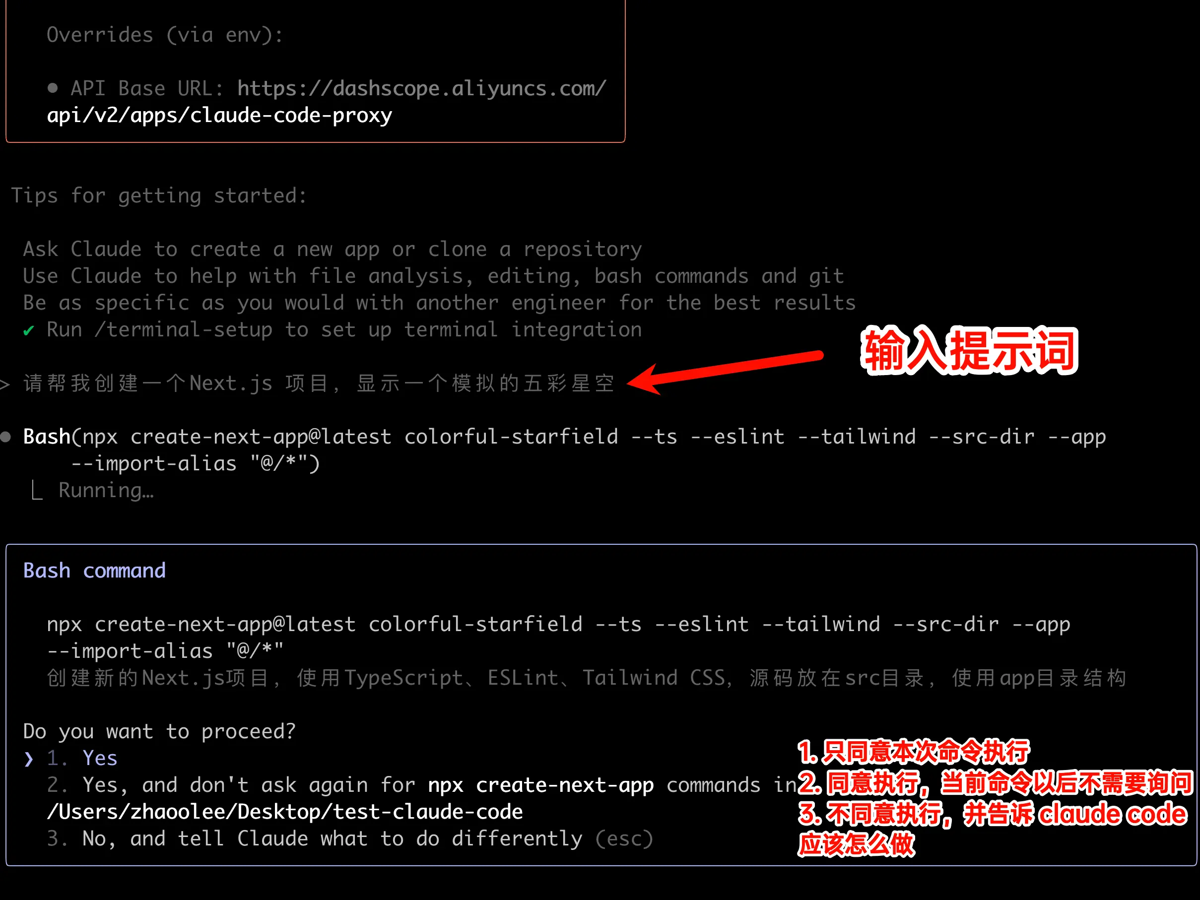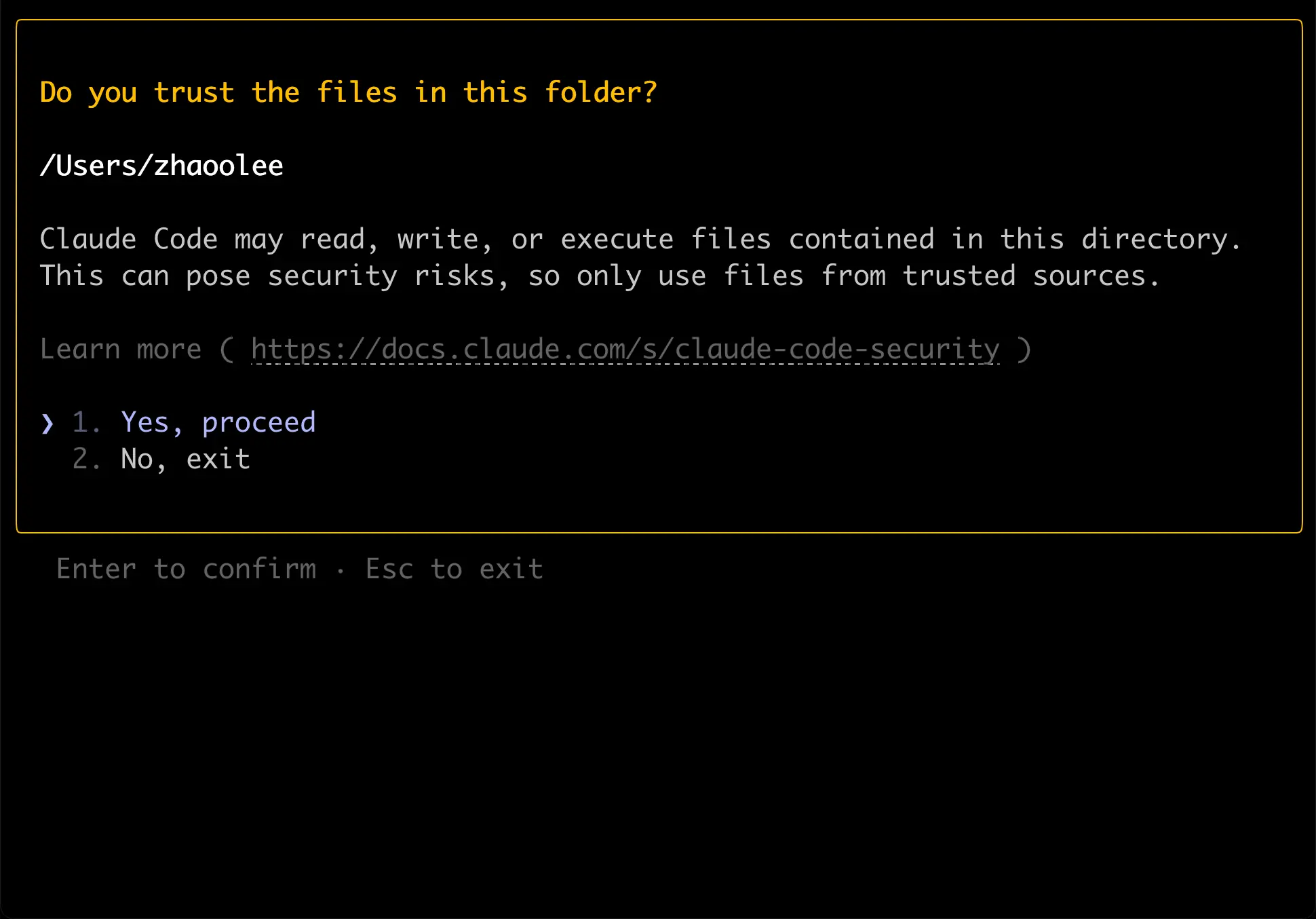 推荐用户只在代码项目路径运行 claude code; 这里我们即使选择了 yes, proceed,claude code 在修改文件时,依然会先问我们是否修改,所以这里依然可以继续选择 yes,proceed,然后回车。