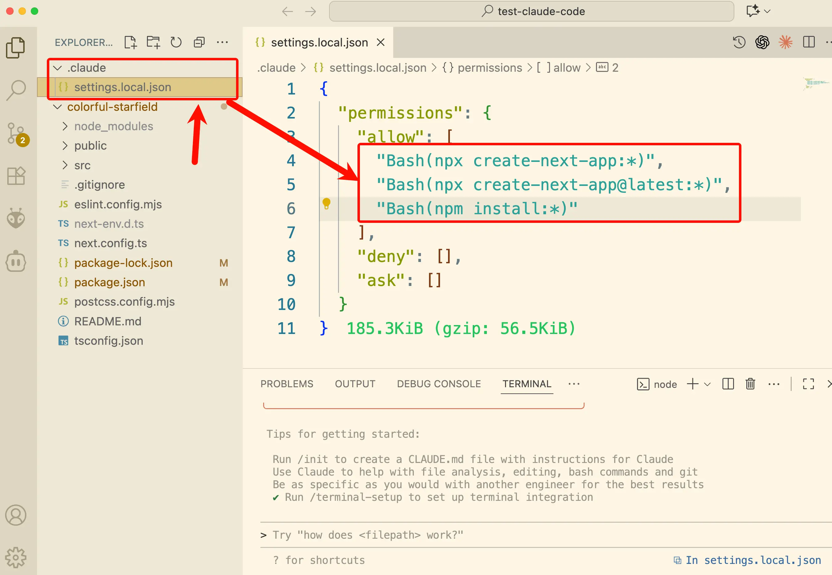 我刚刚选了几次无需询问特定的命令,claude 把我的项目习惯纪录到了项目的.claude文件夹里的 settting.local.json 里面