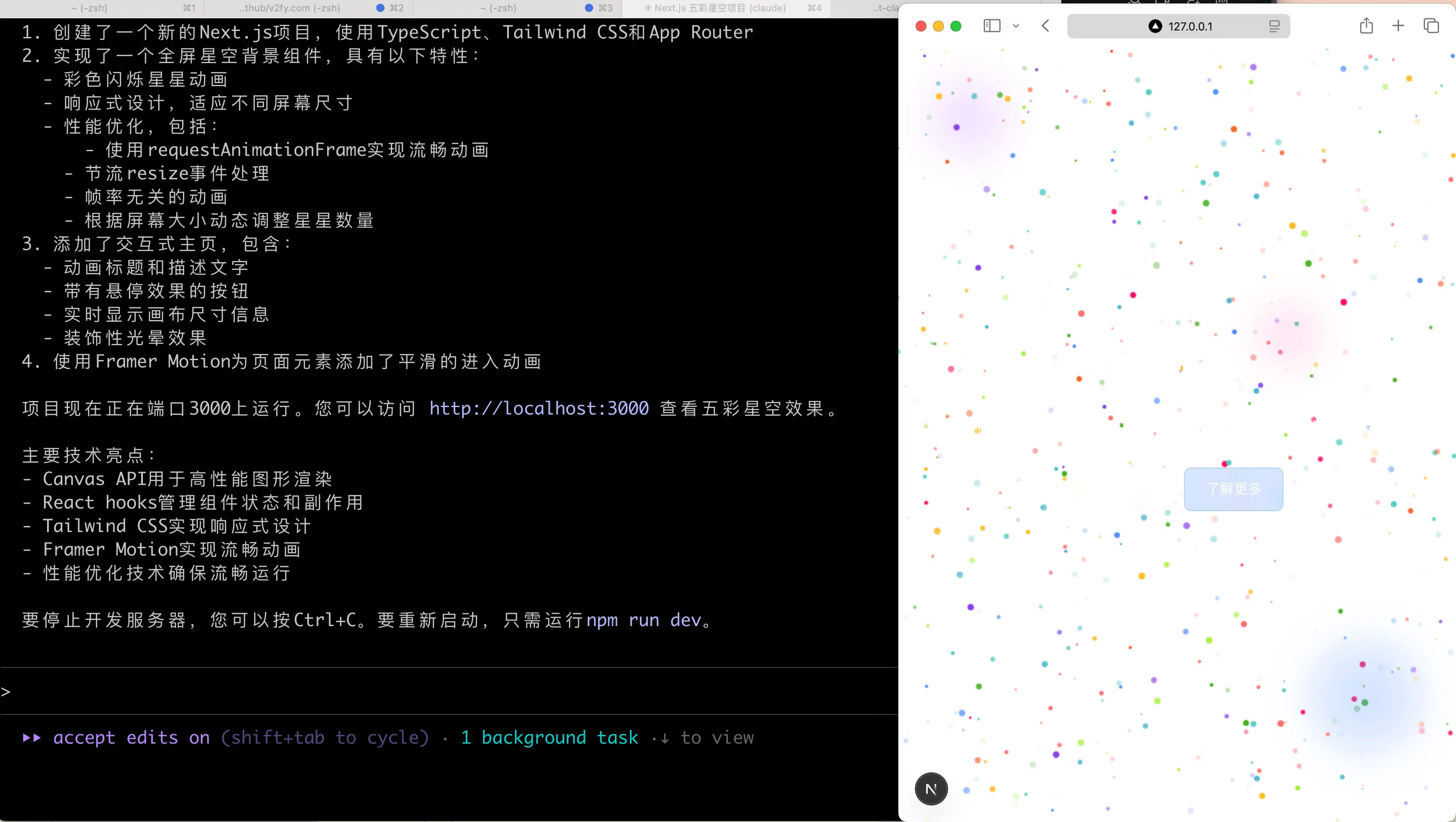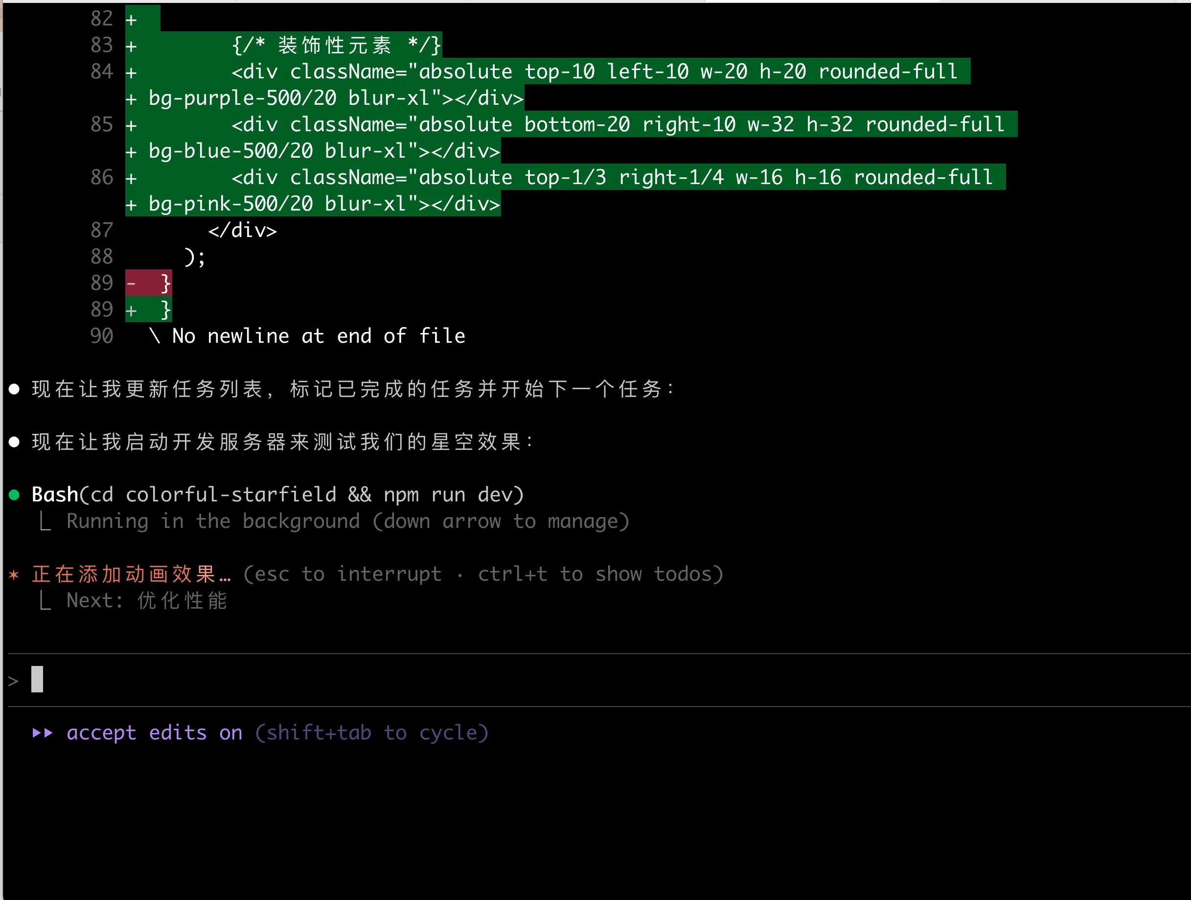 Claude code 的出现让代码变得不值钱,但是并不是程序员变得不值钱,比如上面的示例中就有一个大模型将zIndex设置为负值,导致星星无法显示的 bug,开始我完全信任大模型,但绕了几轮花费大量 token,依然无发修复,最后我亲自打开 vscode, 花了一分钟定位问题,找到 zIndex那一行代码,改为一个合理的值,立刻正常运行了。
