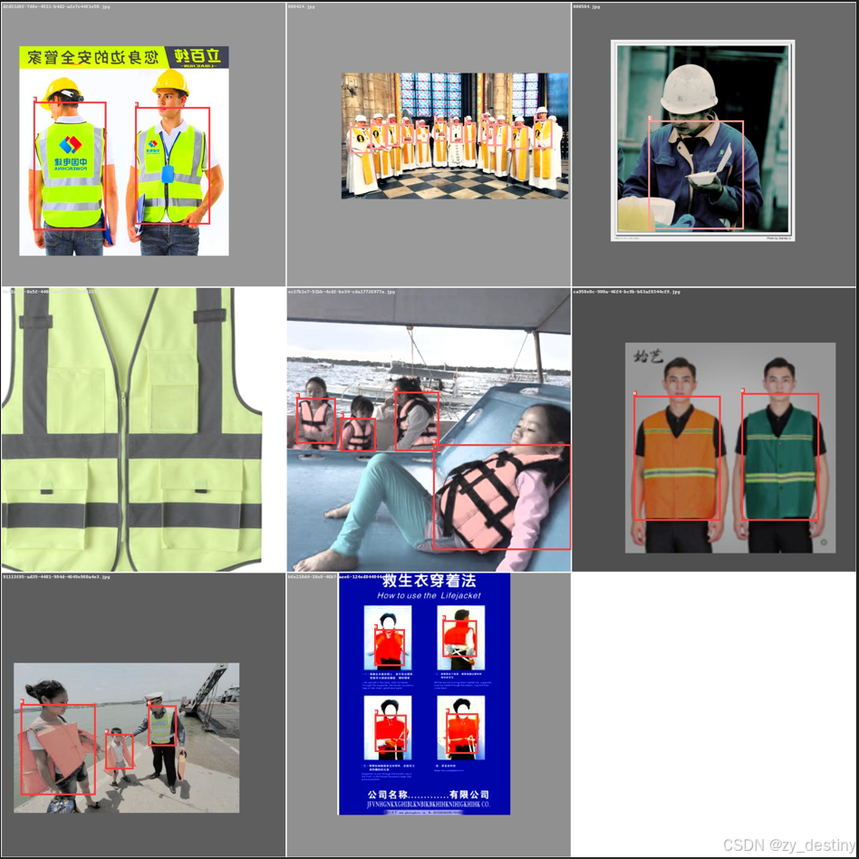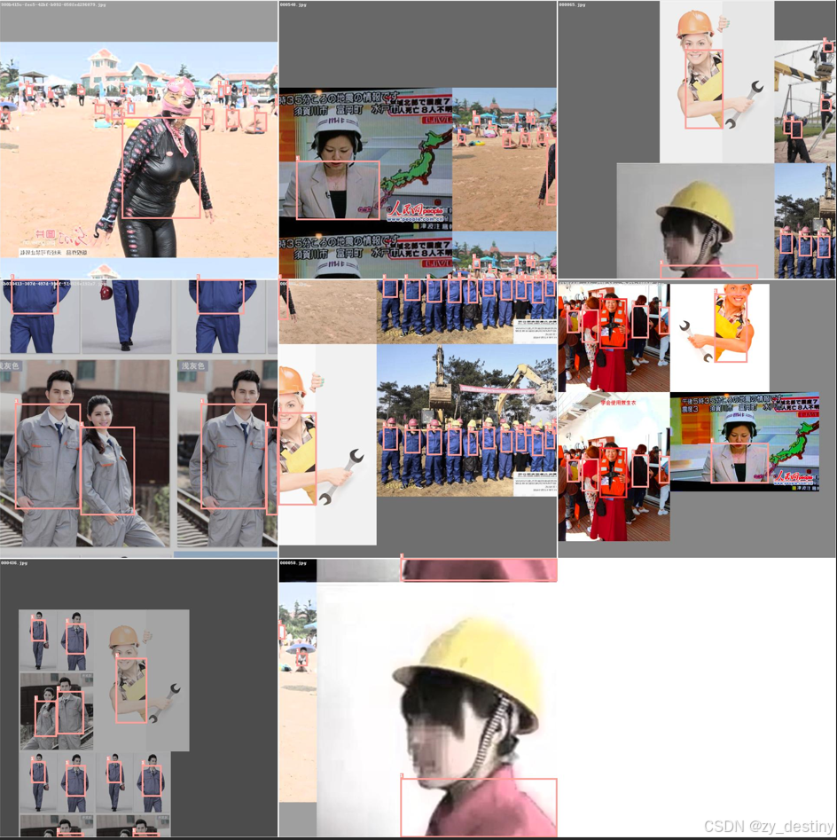反光衣数据集总共包含1083张样本数据,其中训练集800张,验证集283张,部分影像展示如下: