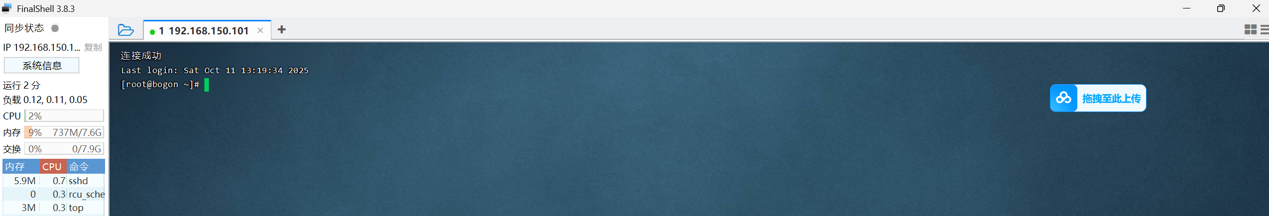 首先将资料当中的镜像导入到VMWare当中并配置网络,启动虚拟机输入密码后打开finalshell进行连接: