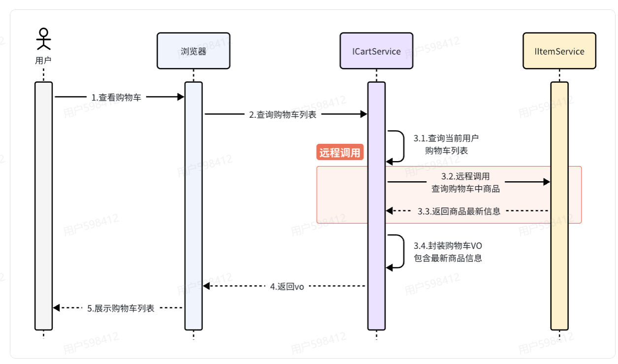 最终结果就是查询到的购物车数据不完整,因此要想解决这个问题,我们就必须改造其中的代码,把原本本地方法调用,改造成跨微服务的远程调用(RPC,即R emote P roduce Call)。