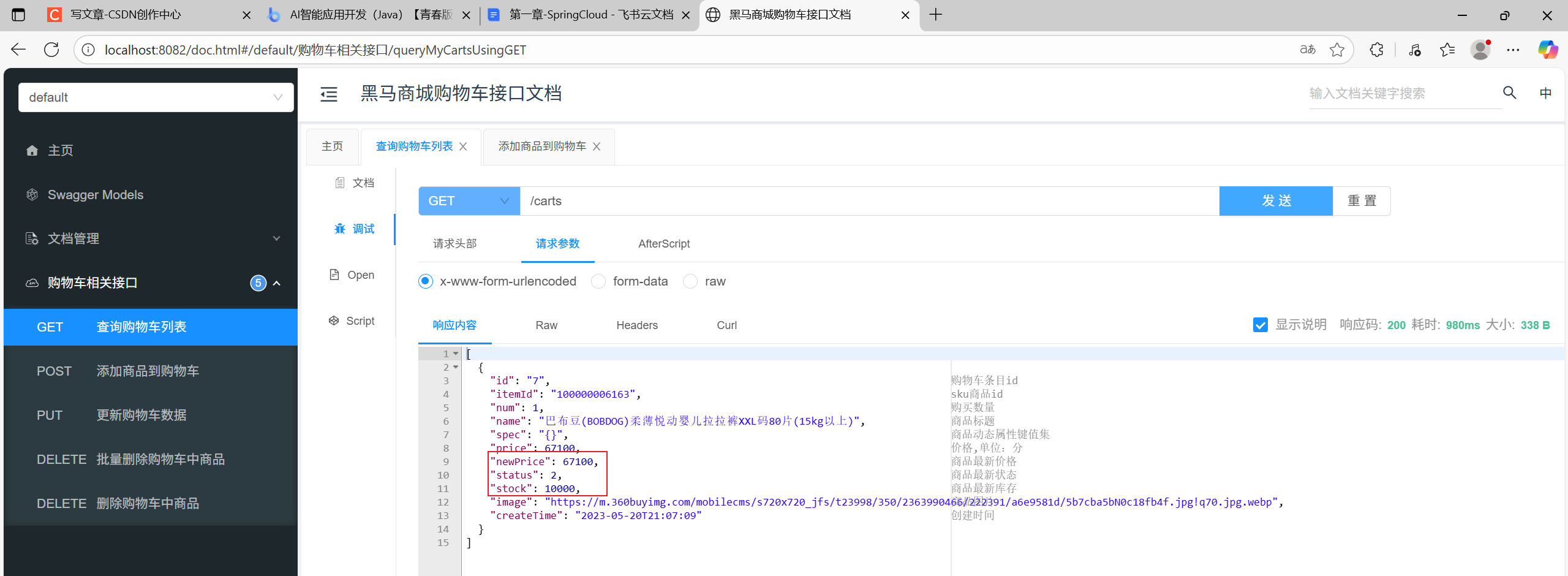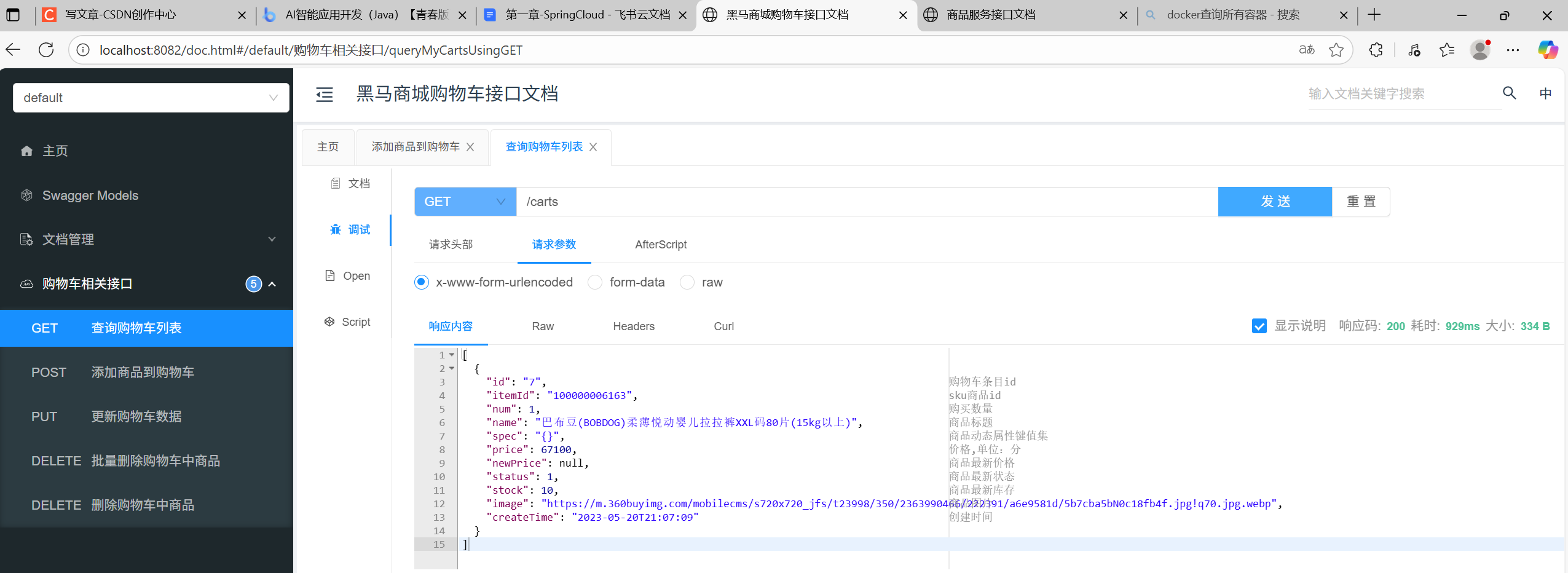 然后启动CartApplication,访问swagger文档页面:http://localhost:8082/doc.html