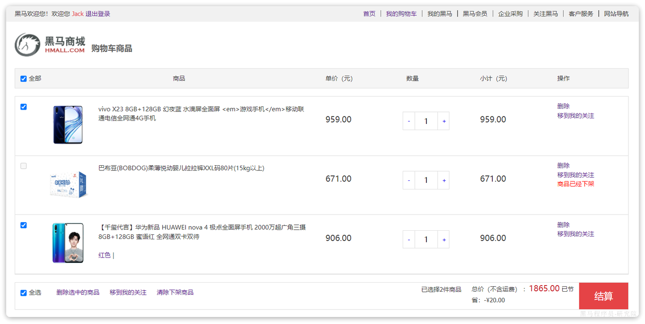 加入成功后即可进入购物车列表页,查看自己购物车商品列表: