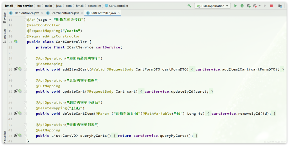 相关功能全部在com.hmall.controller.CartController中: