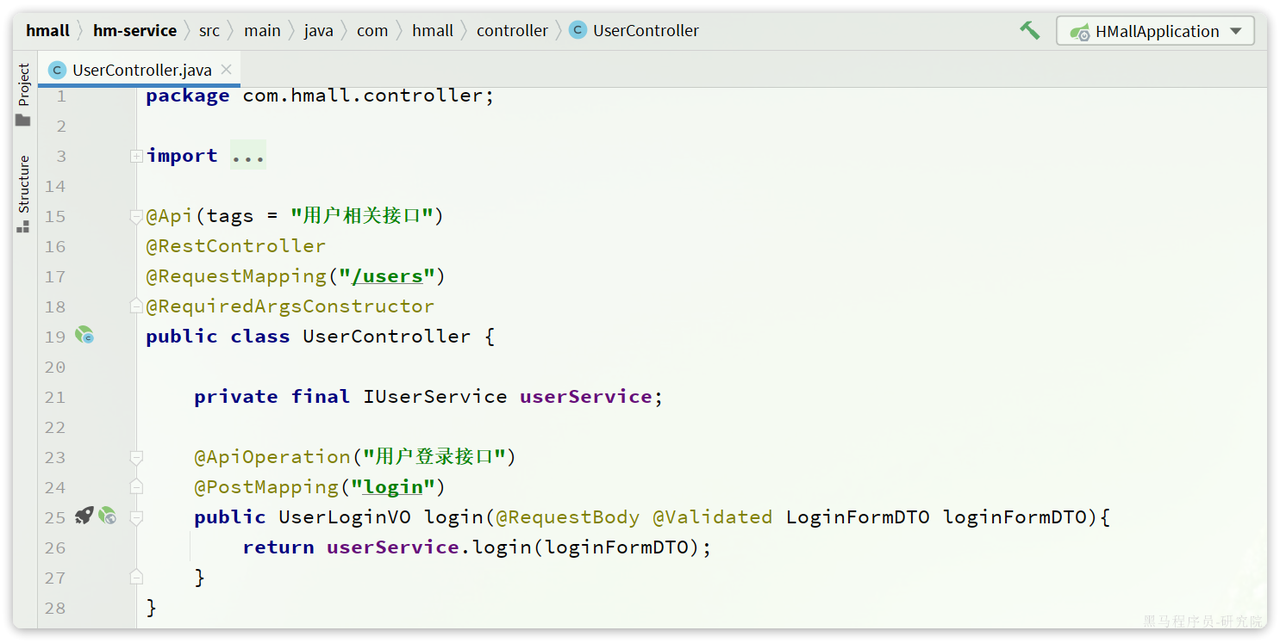 登录入口在com.hmall.controller.UserController中的login方法: