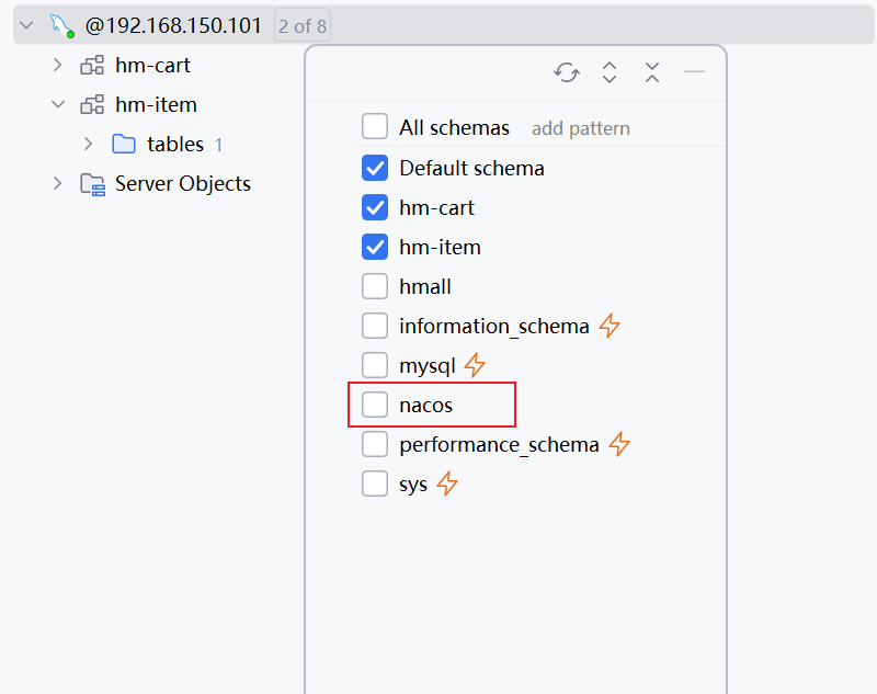 我们基于Docker来部署Nacos的注册中心,首先我们要准备MySQL数据库表,用来存储Nacos的数据。由于是Docker部署,所以大家需要将资料中的SQL文件导入到你Docker中的MySQL容器中: