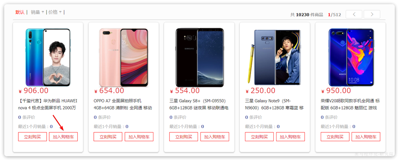 在搜索到的商品列表中,点击按钮加入购物车,即可将商品加入购物车: