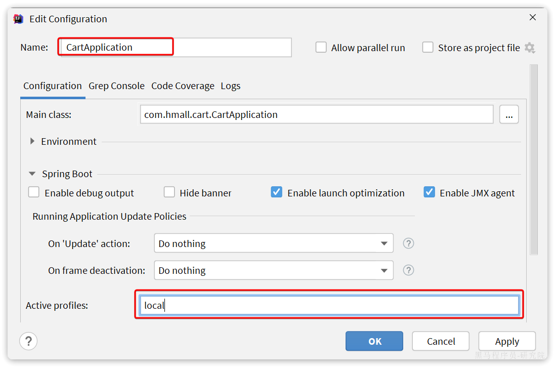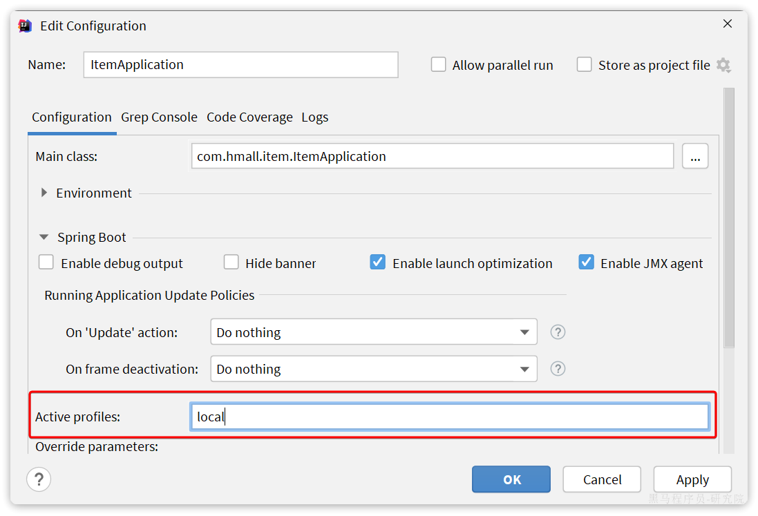 7.接下来,就可以测试了。不过在启动前,同样要配置启动项的active profile为local: