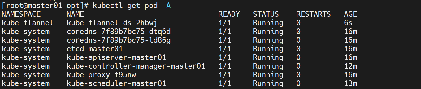 状态;flannel网络插件部署后,Pod间跨节点通信正常,kube-system