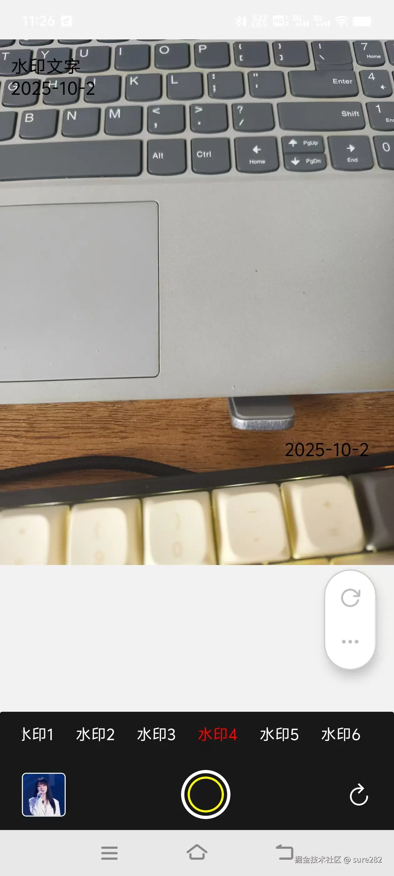 参考市面app应用的水印相机功能,通常是实时拍照,然后可以选择水印样式和内容并添加到拍摄的照片上,再执行保存操作。水印相机的好处除了为照片留下美好印记也有一些需要巡检打卡等应用场景,核心是拍摄同时获取同步的位置信息等要素。