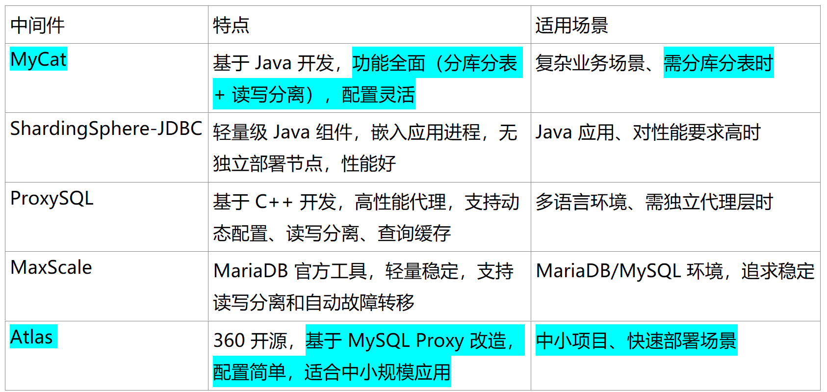 中小规模应用 :优先选择 Atlas 或 MaxScale(部署简单、维护成本低)