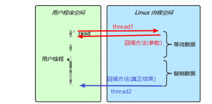 异步意味着,在进行读写操作时,线程不必等待结果,而是将来由操作系统来通过回调方式由另外的线程来获得结果