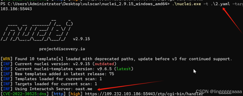 等协议来验证漏洞是否存在 - 比如这里的CVE-2022-30525,它就需要通过让目标解析dns地址来判断是否存在漏洞,那我们就可以编写如下yaml文件: