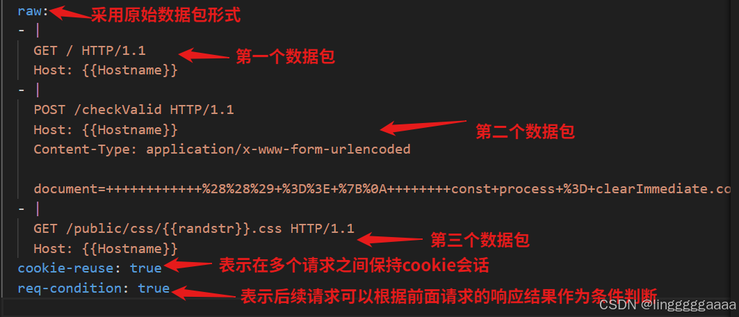 - 有的漏洞它可能是需要交互的,比如ping dns地址之类的,那这时候我们就不是像上面这样写死匹配响应体的数据了