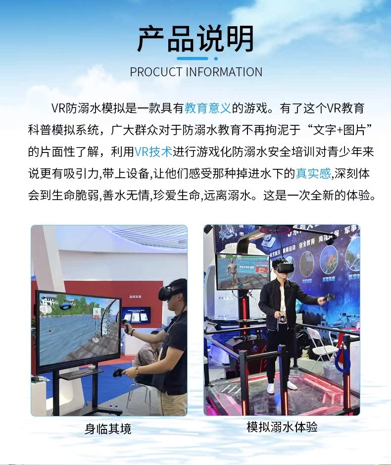 在教育普及方面,该系统也展现出极高的效率和便捷性。学校、社区等教育机构可以方便地引入这一系统,组织大规模的防溺水教育活动。与传统的实地演练相比,VR系统不受场地和时间限制,能够同时容纳多人进行体验,且无需担心安全问题,大大降低了教育成本和组织实施的难度。