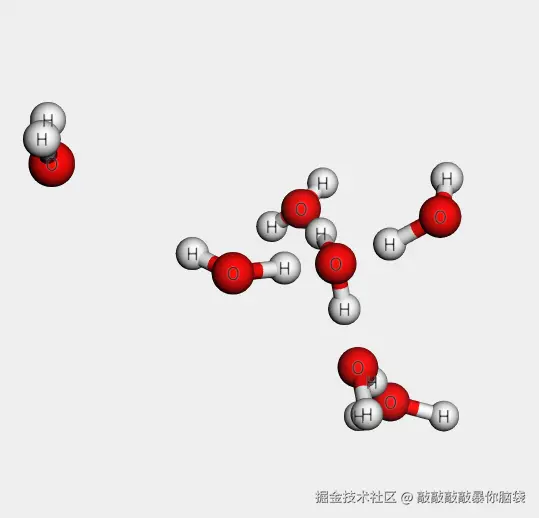 氧原子红色- 元素原子都会配置对应颜色作为区别标识