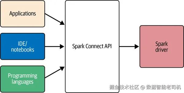 自 Apache Spark 3.4 起提供的客户端-服务器架构 :通过 DataFrame API 远程访问 Spark 集群。该解耦便于把 Spark 集成到应用、IDE、notebook 与多种语言。