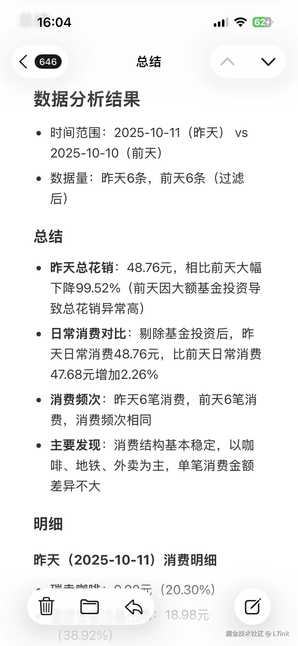 它基于 Spring AI ,统一接入多个大语言模型,帮助你轻松管理日常消费。通过 iPhone 快捷指令,Moni 可以自动接收你的账单,并由 AI 进行智能解析与分类。系统会在每个夜晚自动生成消费分析与总结报告,通过邮件发送给你,让你在第二天即可快速了解自己的财务状况与消费趋势。
