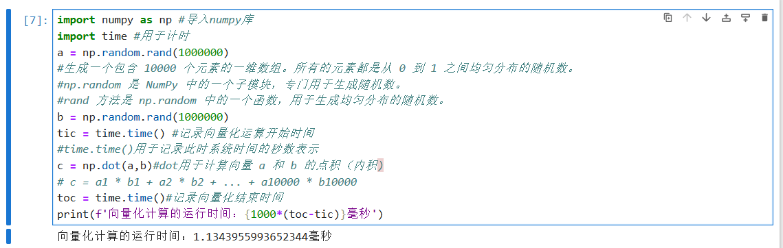 print(f'向量化计算的运行时间:{1000*(toc-tic)}毫秒')