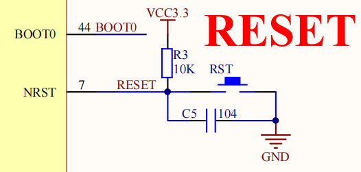 STM32单片机NRST低电平复位引脚,连接复位电路