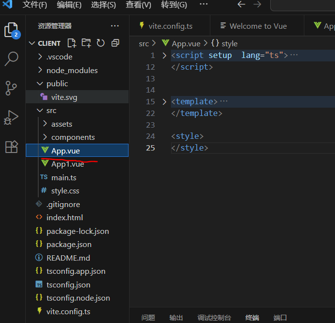 **<script>**标签中定义了我们写的语言是Ts,我们可以在里面编写Ts的代码