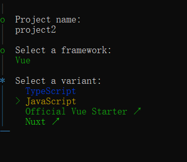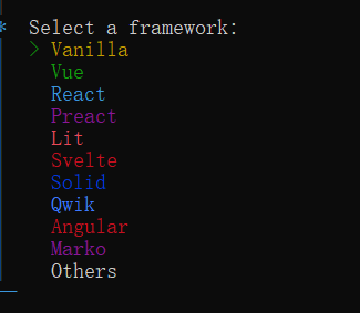 使用上下键选择对应的框架,我们这里选择Vue会自动生成Vue3的结构