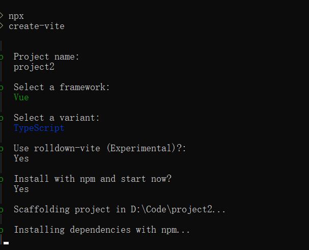 在某个文件夹目录下输入以下命令用于使用Vite构建Vue3项目工具