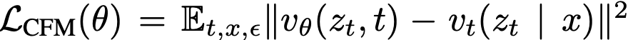 。虽然该损失函数因式(1)的边际化而难以直接计算,但可采用条件流匹配损失进行替代优化:
