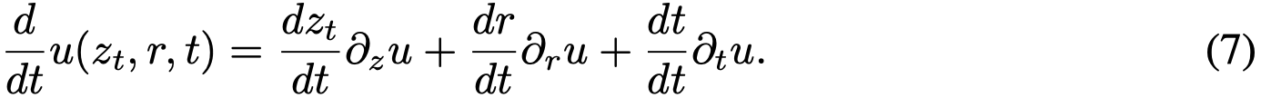 式(6)的右侧为 u(z_t, r, t) 提供了"目标"形式,将用于构建损失函数训练神经网络。为使目标适用,需进一步分解时间导数项。