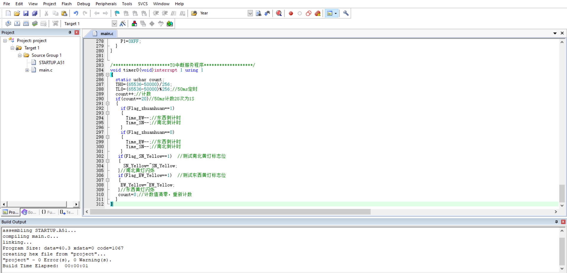 P1 = S[0]; //给P1口赋值,使SN绿灯,EW红灯