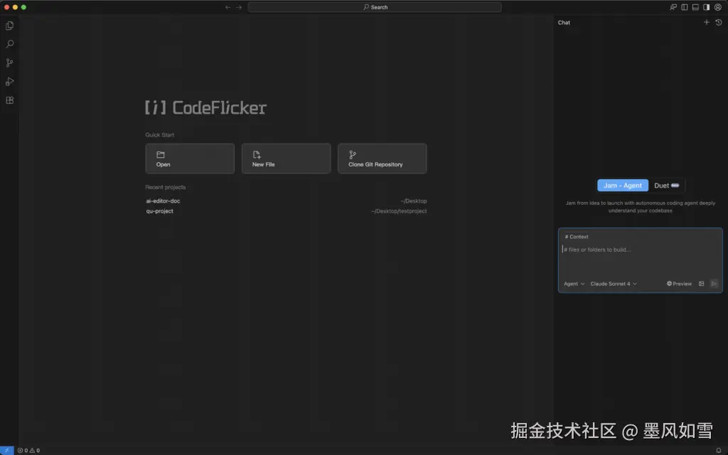 CodeFlicker最吸引我的,是它那Agent驱动的开发范式。这跟我们常见的IDE可大不一样。它内置了智能体(Agent),能够像一个真正的高级工程师一样,理解你的意图,然后自主决策、感知环境,甚至调用各种工具来完成任务。