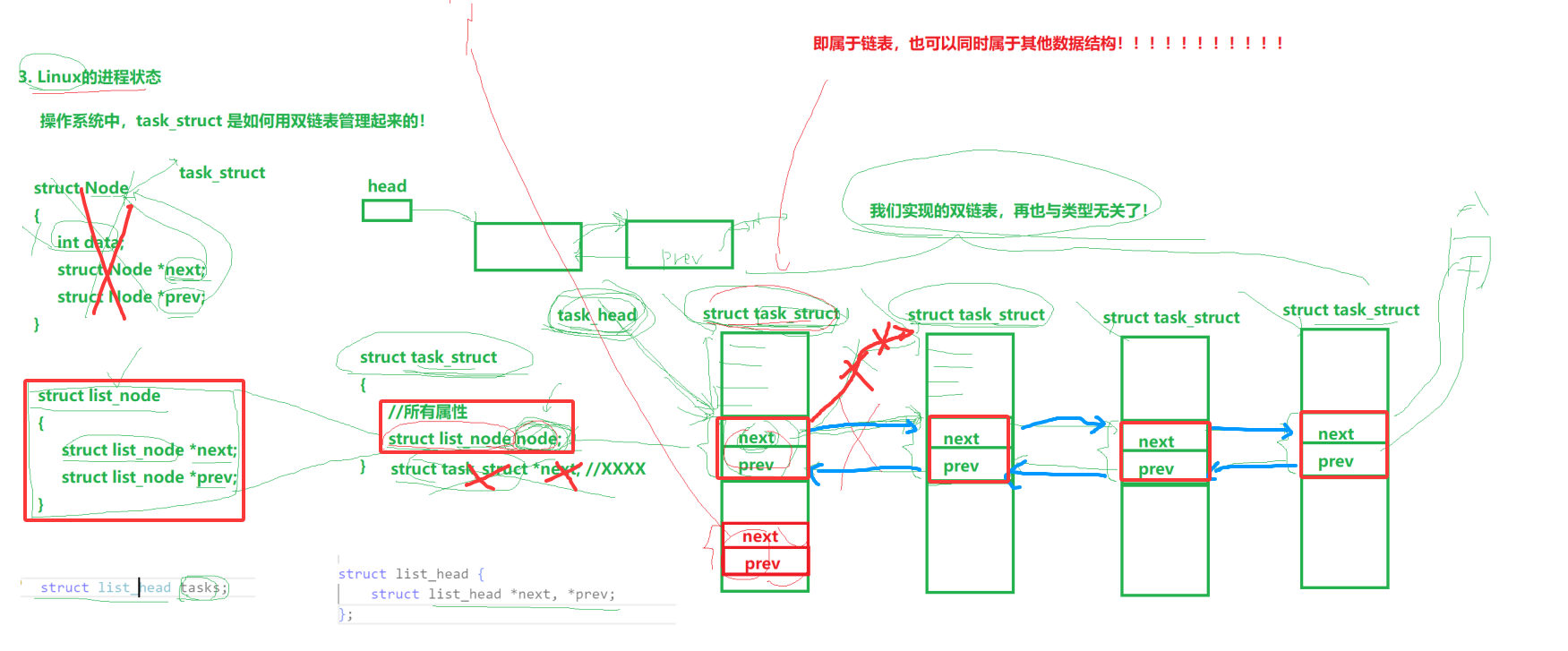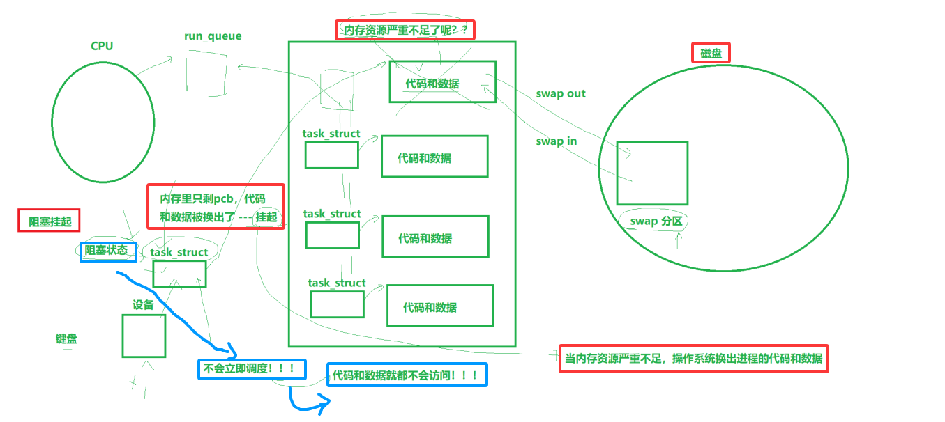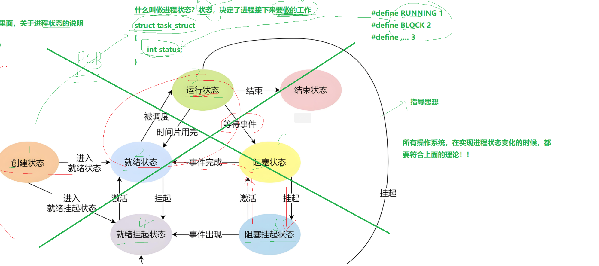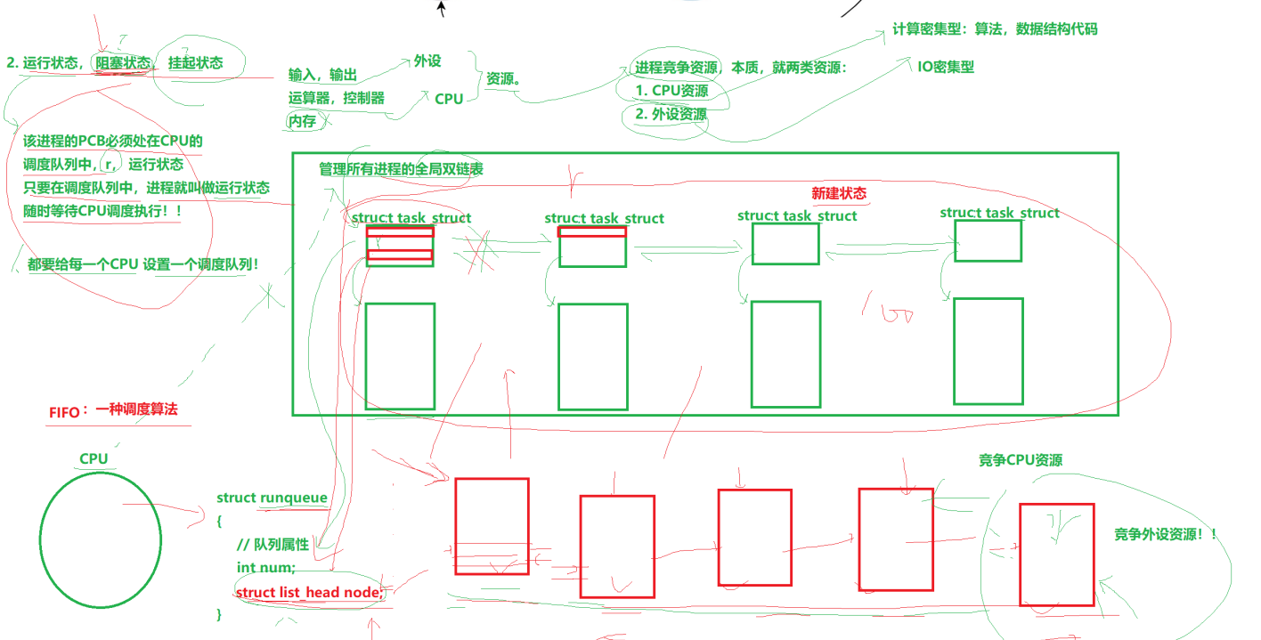 我们的进程在全局的双链表中,但是没有在CPU的运行队列中,我们把这些进程叫做新建状态(就绪状态)。运行状态和就绪状态是在一个队列中的。