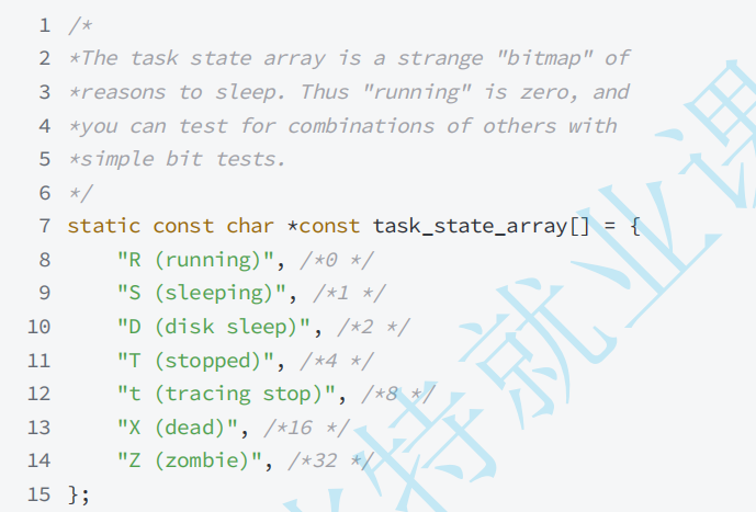 进程最核心的是task_struct,里面就有个状态的属性status,用来标识当前进程属于什么状态,状态就是一个数字。