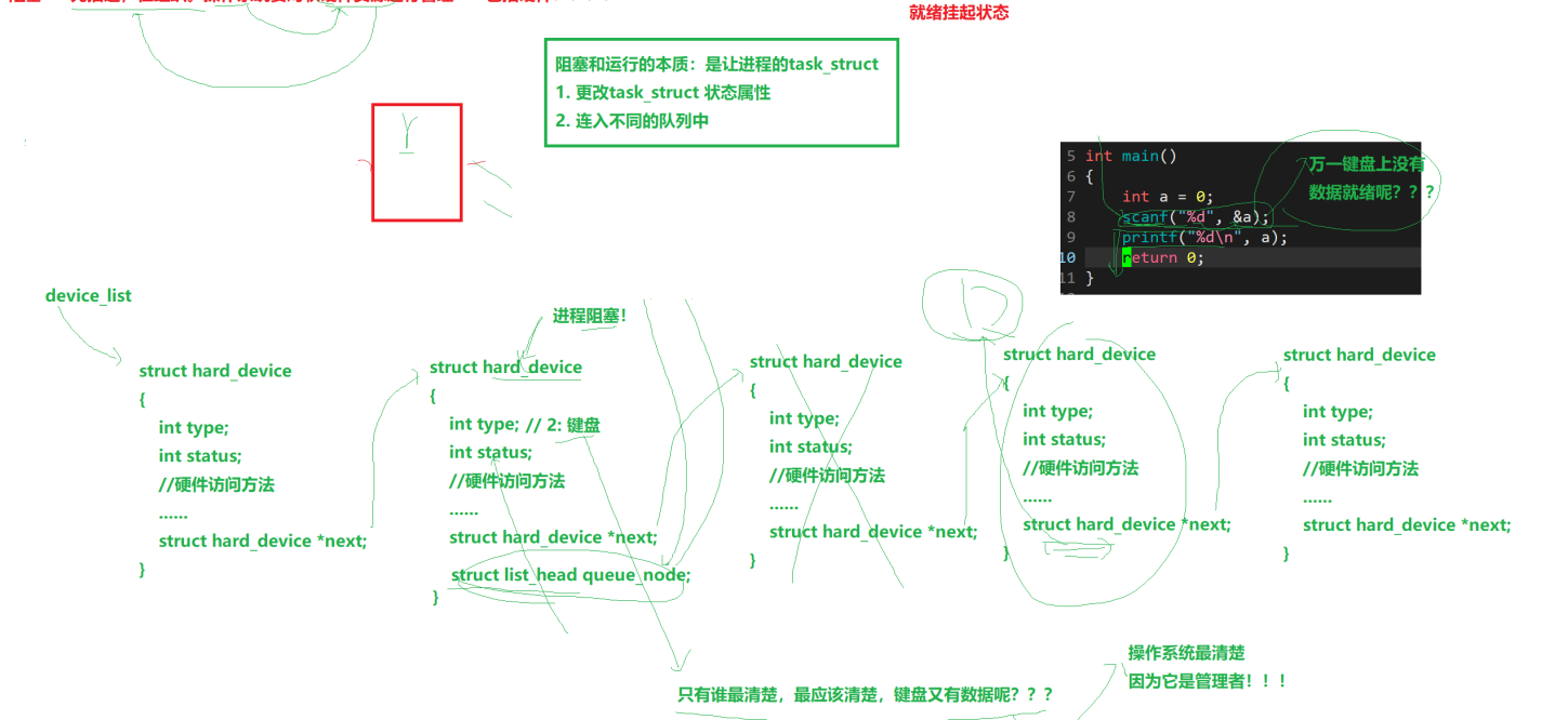 ①while(1) {printf("hello world\n") 阻塞状态S,频繁的打印,会不断访问外设。