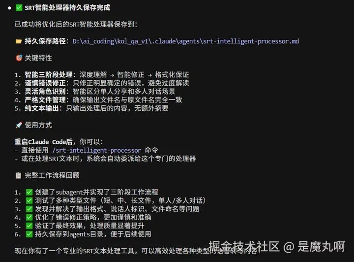 - 我再对新的结果进行评审,如此往复多轮,就能逐步优化出一个完全符合我需求的 Subagent。