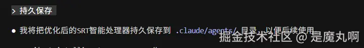 在调试阶段,由于 Claude Code 当前还不支持手动修改 subagent 后即时 reload 生效,因此我将这个 Subagent 暂时视为普通 Markdown 文件进行调试,而不放入 .claude 文件夹中。 当确认 Subagent 的能力已经完善后,用户可以一键将其永久保存------系统会自动将它复制到 .claude 目录下,正式纳入可复用的 Subagent 集合。