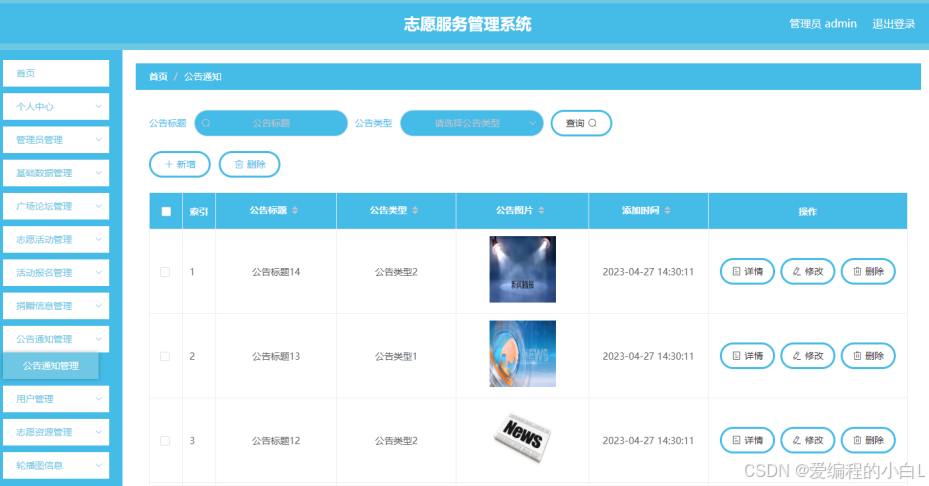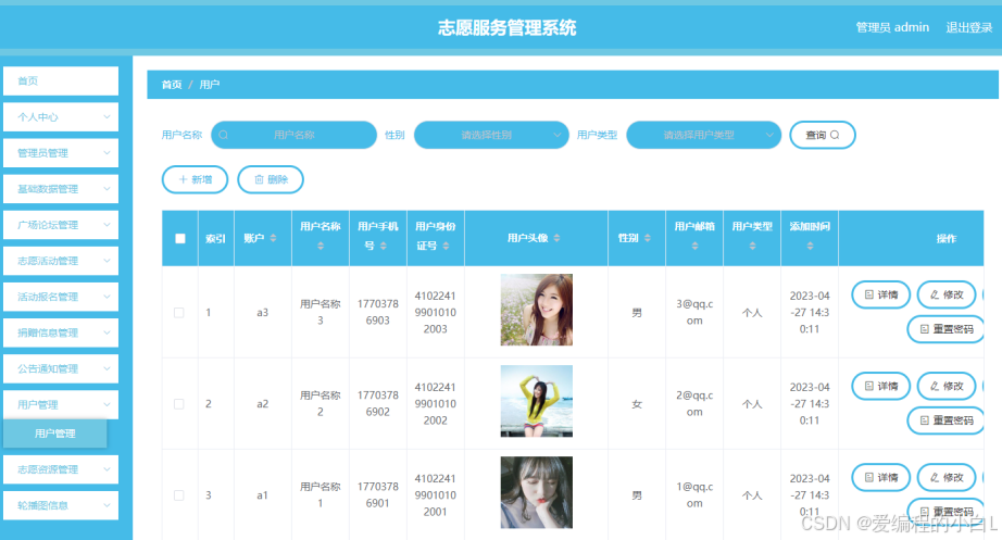 志愿服务管理系统是一款运用软件开发技术设计实现的应用系统,在信息处理上可以达到快速的目的,不管是针对数据添加,数据维护和统计,以及数据查询等处理要求,志愿服务管理系统都可以轻松应对。