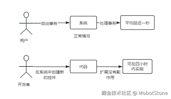 此外,将这些质量属性转化为具体且可衡量的场景是非常关键的一步。如果没有进行这一步,我们可能就会发现自己陷入了对模糊需求的讨论中,而无法明确地判断这些需求是否得到了真正的满足。