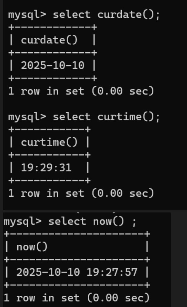 URRENT_DATE 和 CURRENT_DATE() 是 CURDATE() 的同义词⽤于获取当前⽇期CURRENT_TIME 和 CURRENT_TIME([fsp]) 是 CURTIME() 的同义词⽤于获取当前时间