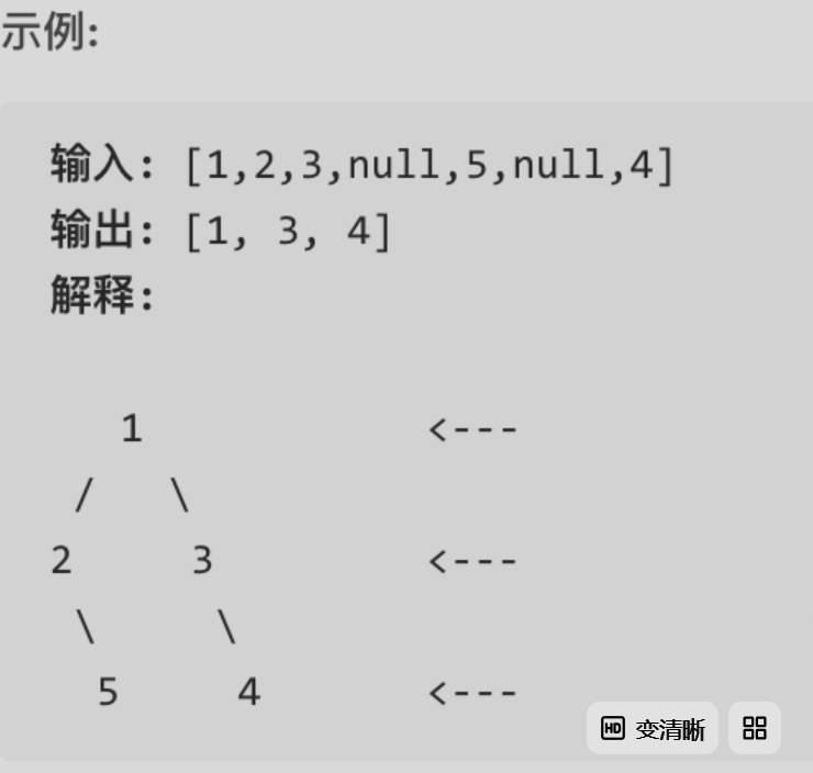 给定一棵二叉树,想象自己站在他的右侧,按照从顶部到底部的顺序,返回从右侧所能看到的节点值。