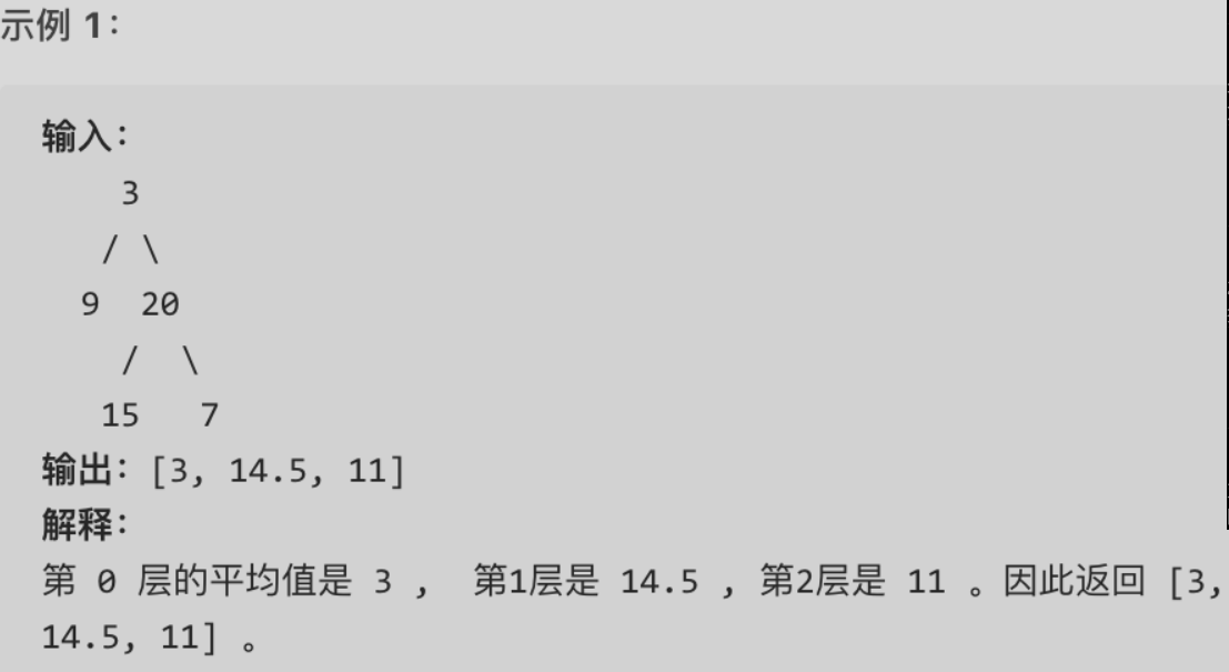 给定一个非空二叉树,返回一个由每层节点平均值组成的数组。