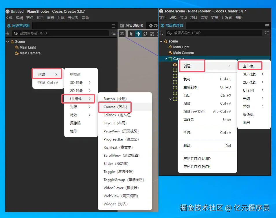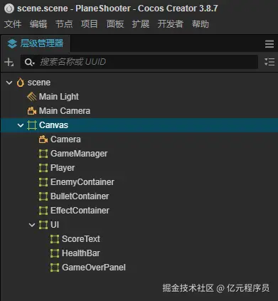 根据上述结构,我们在Cocos编辑器中创建对应的结构: