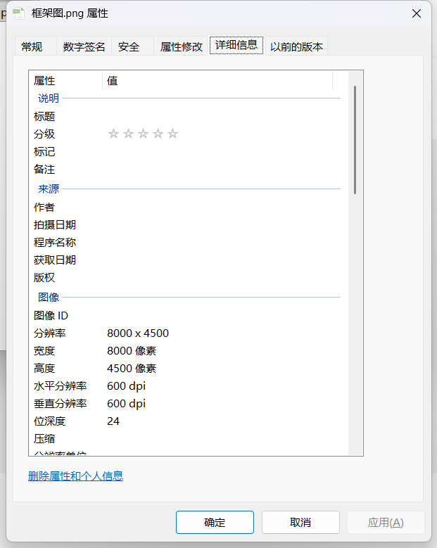 然后打开刚才保存下来的框架图.png,可以看到,确实是600dpi